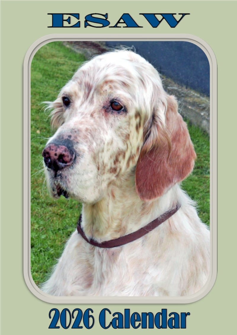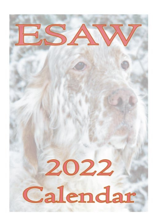 Late October and early November mark the arrival of the annual ESAW A4, 12‑page calendar, which has become a favorite among English Setter enthusiasts.